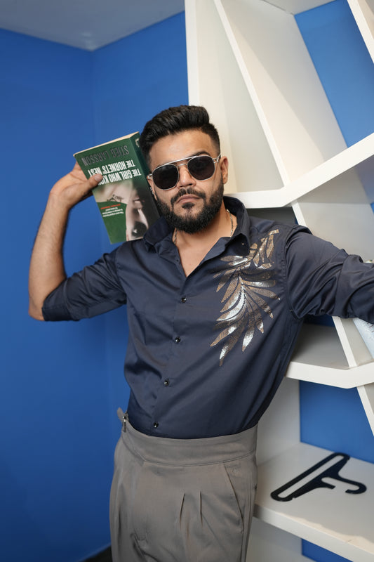 COMING SOONOslo Dark Blue Printed shirt