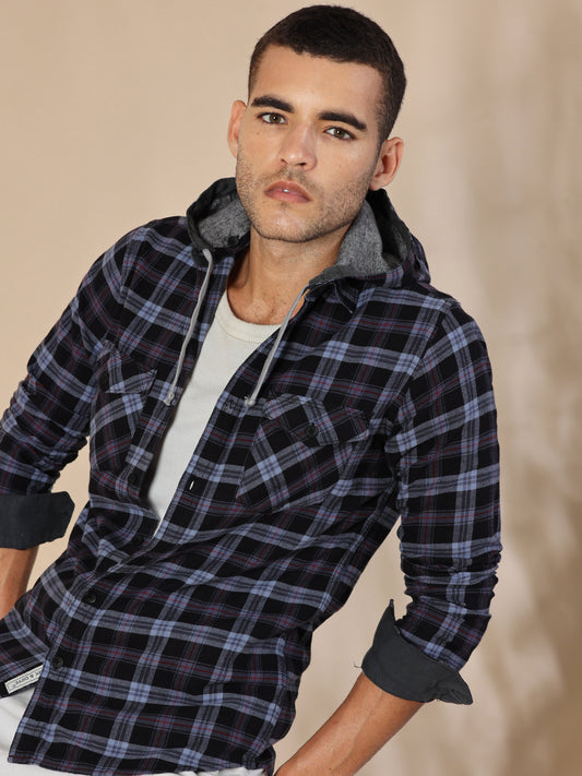 COMING SOONFreetown Navy Check Hoodie Shirt