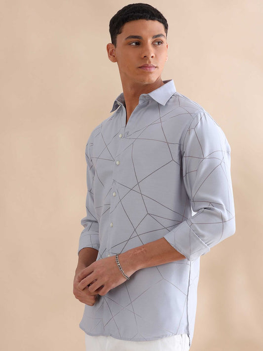 Prague Cool Blue Geometric Design Shirt