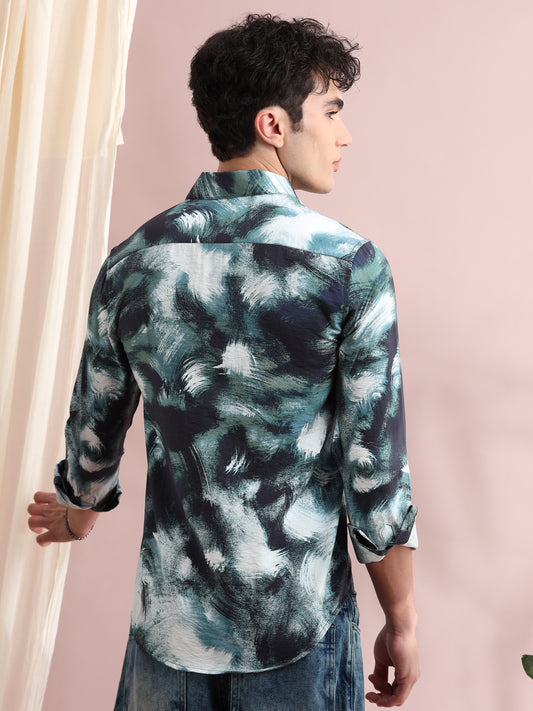 COMING SOONSantiago Teal Green Patches Printed Shirt