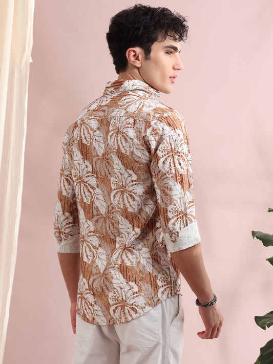 COMING SOONSantiago Pale Taupe Floral Printed Shirt