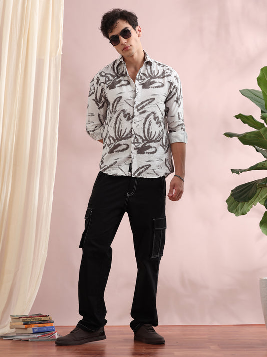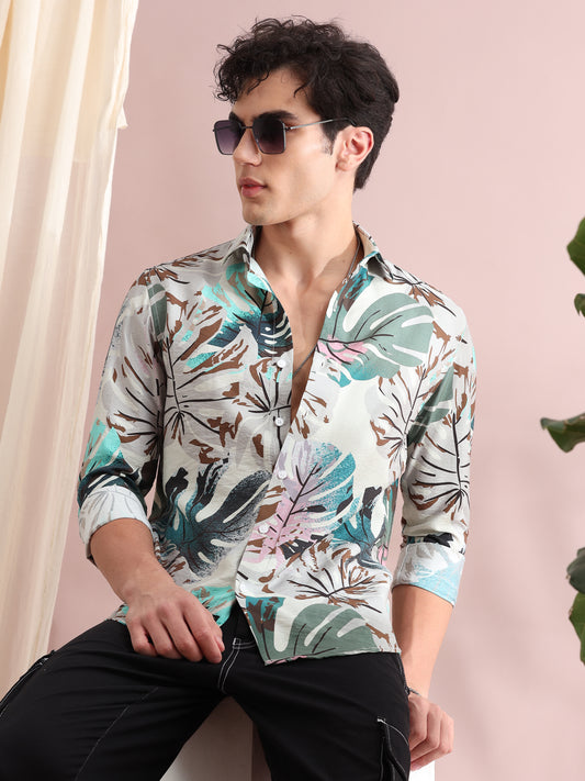 Santiago Quill Grey Trophical Printed Shirt