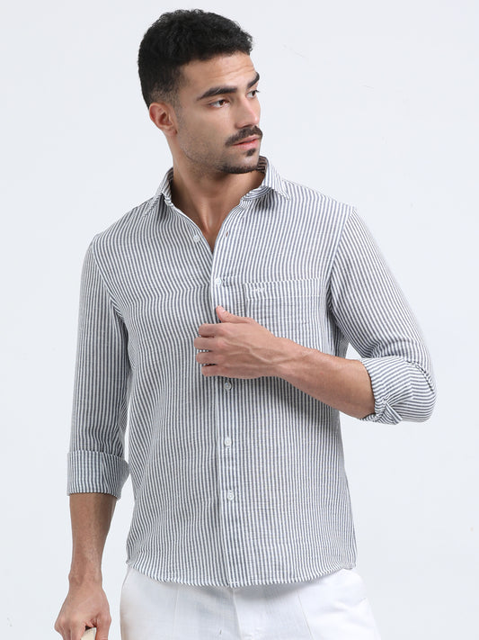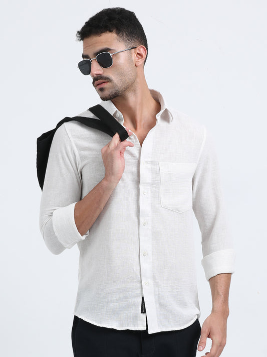 COMING SOONWhite and Grey Self Textured Printed Shirt