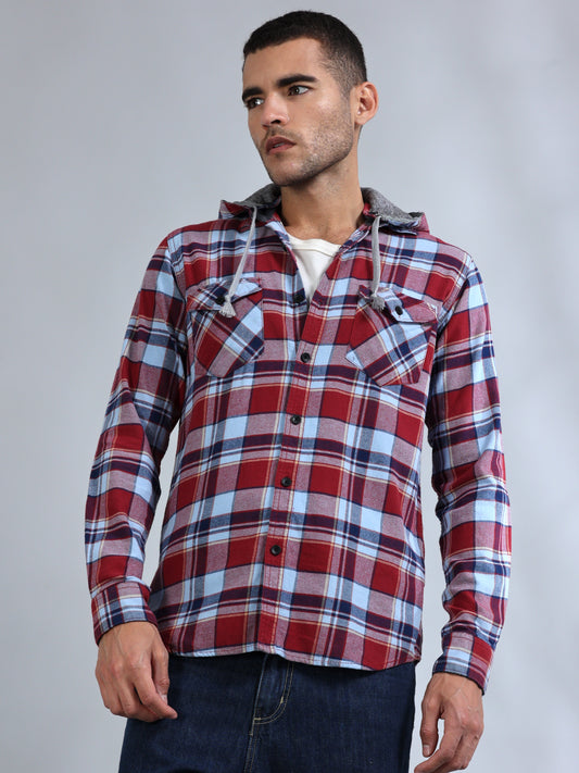 COMING SOONFreetown Bottle Green & Red Check Hoodie Shirt