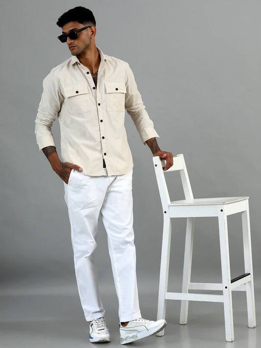 Vancouver Premium Cotton Cream Corduroy Double Pocket Shirt