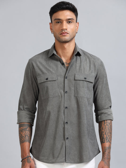 COMING SOONBasel Friar Grey Corduroy Double Pocket Shirt