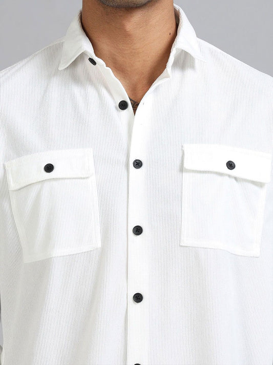 COMING SOONBasel White Corduroy Double Pocket Shirt