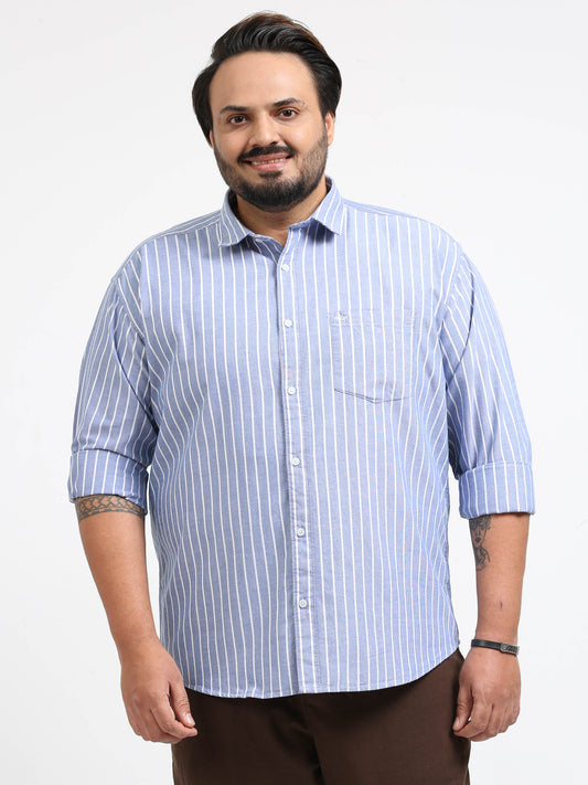 Gandia Aqua Blue Plus Size Stripes Shirt
