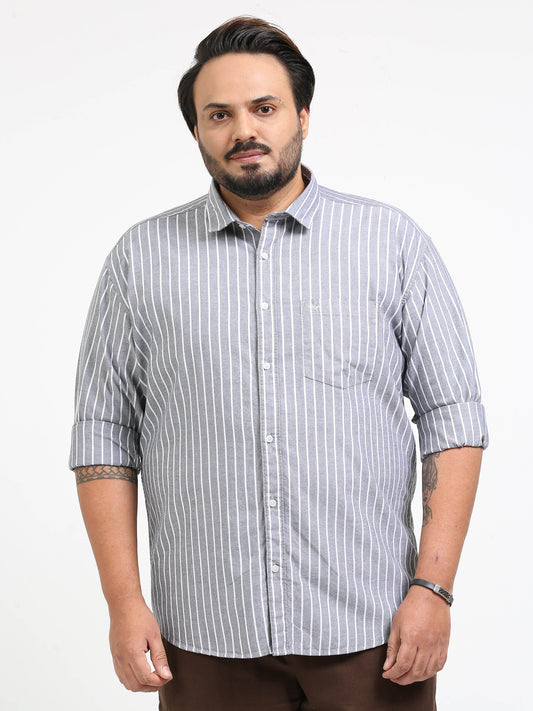 COMING SOONGandia Pale Grey Plus Size Striped shirt