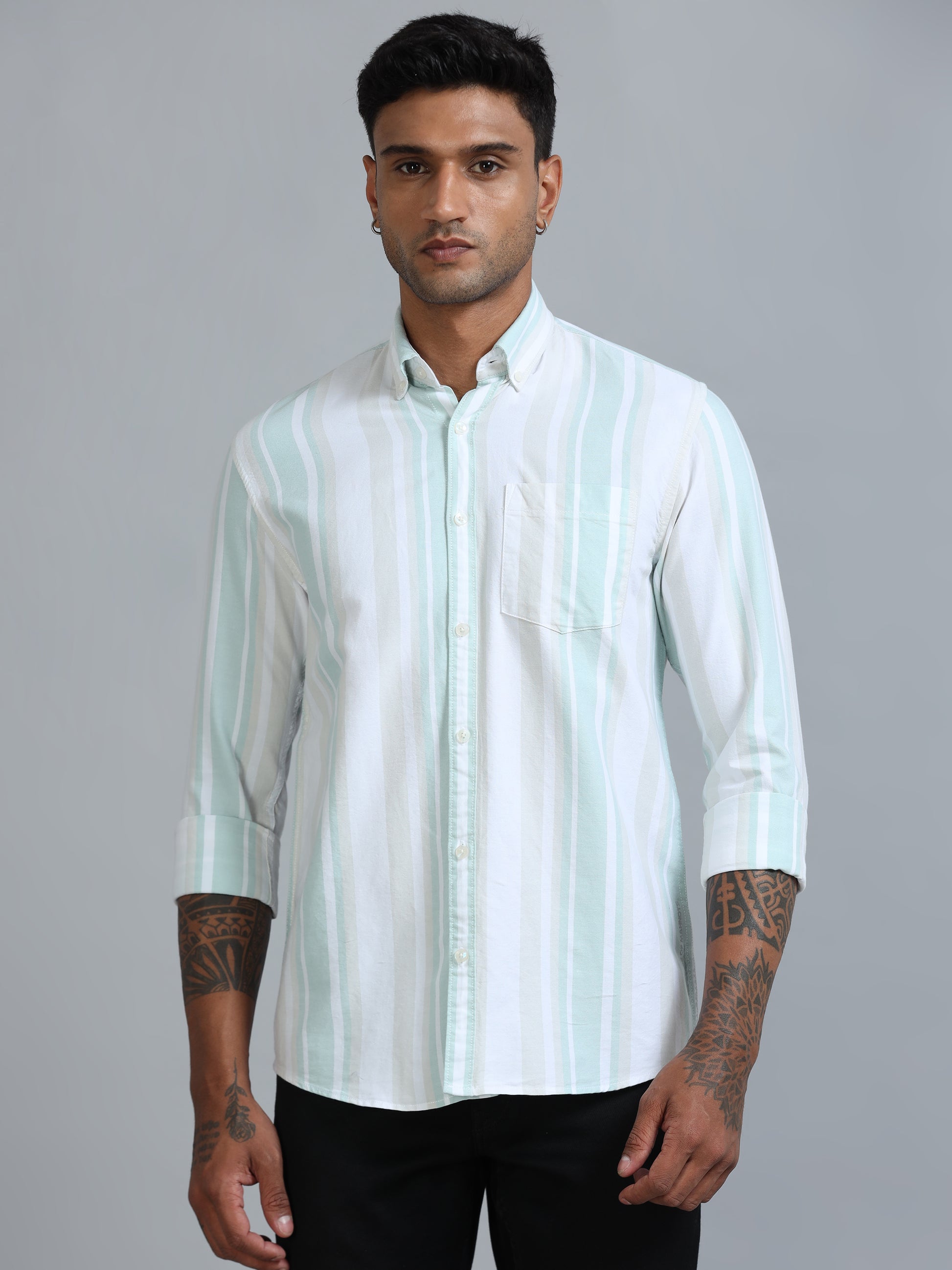 Gandia Aqua Blue Plus Size Stripes Shirt