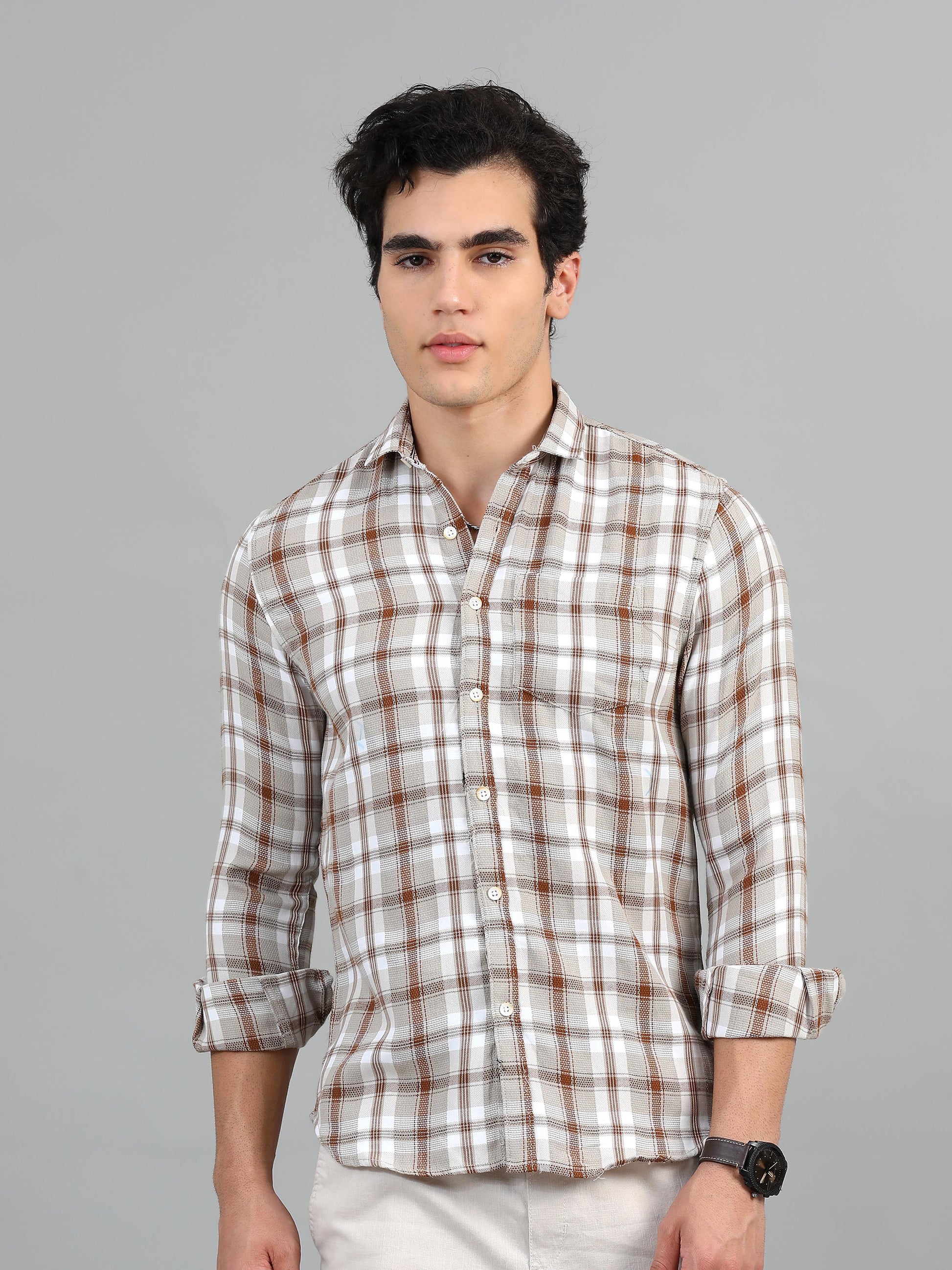 Hanoi Grey brown Timeless check shirt